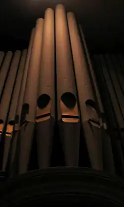 - Accouplements en dominos : G8 / péd.; R8 / péd.; P8 / péd.; G4 / péd.; R4 / péd.; P4 / péd.; R16 / G; R8 / G; R4 / G; P16 / G; P8 / G; P4 / G; G16 / P; G8 / P; G4 / P; R16 / P; R8 / P; R4 / P; ; Récit 16’; Récit muet; Récit 4; Grand orgue 16’; Grand orgue muet; Grand orgue 4’, Positif 4’; Positif Muet; Positif 16’.
