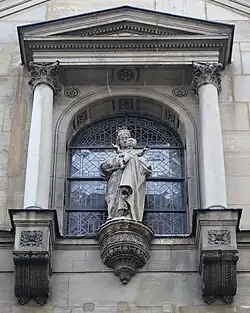 À l'extérieur, l'église est pourvue d'un porche à colonnes dont le tympan est décoré d'un bas-relief de pierre signé Charles Gumery, en 1859, L'Annonciation, et au-dessus d'une statue en pierre du XVIIe siècle représentant la Vierge et l'Enfant.