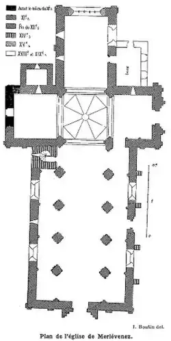 - ↑ Roger Grand, « L'église de Merlévenez (Morbihan) », Bulletin monumental, , pages 67 à 101 (lire en ligne, consulté le ).