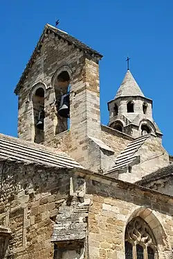 L'église est couverte de dalles de pierre et possède deux clochers :