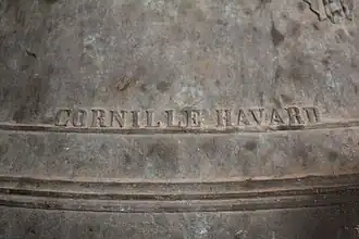 La tour-clocher renferme quatre cloches fondues, en 1956, par la fonderie Cornille-Havard, à Villedieu-les-Poêles.