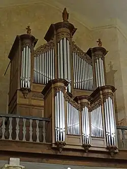 Le buffet d'orgue et presque tous les tuyaux datent de la fin du XVIIIe siècle. L'orgue a été mis en place par le facteur d'orgues Charles Jean-Baptiste Gadaud en 1854[3],[4],[5]. Des modifications lui ont été apportées au début du XXe siècle et dans les années 1970. L'orgue a été restauré par le facteur d'orgues espagnol Gerhard Grenzig en 1986 suivant les plans de l'organiste Francis Chapelet.