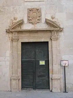 - ↑ Sebastián, Santiago. Arquitectura i decoració del segle XVI, en Història de l'art al País Valencià. Valence: Eliseu Climent, 1988. Volum II, p. 40. (ISBN 84-7502-212-X), qualifie le portail de proto-renaissance, et Bérchez, Joaquín; Jarque, Francesc. Arquitectura renaixentista valenciana (1500-1570). Valence: Bancaixa, 1994, p. 101. (ISBN 84-87684-49-1), de suivre le courant qui était présent au centre du pays un demi-siècle avant, quand on a commencé à introduire ce style.