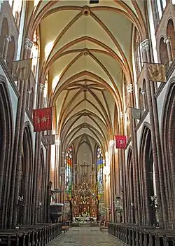 Elle a été conçue par l'architecte Józef Pius Dziekoński, qui a également conçu la Cathédrale de la Protection-de-la-Sainte-Vierge-Marie de Toruń et qui s'est inspiré de l'Église votive construite à Vienne les décennies précédentes.