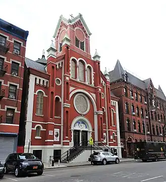 L'église Notre-Dame des Douleurs a été créée en 1867 sous le nom de Our Lady of the Seven Dolors Church et est dirigée par les frères capucins. Elle a servi de paroisse nationale pour le grand nombre de catholiques allemands qui ont immigré à New York à la fin du XIXe siècle. Plus tard, elle est devenue une paroisse pour les immigrants italiens puis hispaniques [2].