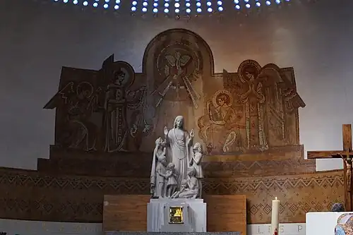 Les mosaïques représentant le chemin de croix sont l'œuvre de Jean Gaudin.