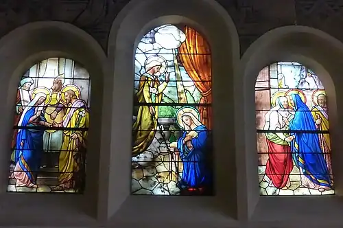 Les vitraux sont l'œuvre du maître verrier Charles Borie.