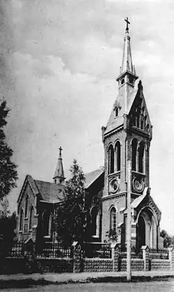 La paroisse catholique de Gatchina décide de faire construire une église dédiée à Notre-Dame du Mont Carmel en 1906. Le projet est confié à Lev Chichko, et la construction se poursuit jusqu'en 1911 avec la collaboration de Leonid Kharlamov et Alexandre Barychnikov. L'église néo-gothique est consacrée par Mgr Jan Cieplak, le , et dépend de Sainte-Catherine de Saint-Pétersbourg. Elle ferme en 1937, et ceci est confirmé en 1939, pour devenir une boulangerie et, après la guerre où elle est fortement endommagée, en garage.