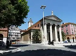 Façade néo-classique de l'église, côté du port Lympia et baie des Anges de Nice. | |