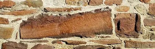 Le mur extérieur du collatéral nord porte encore la trace d'une ancienne porte - aujourd'hui murée - dont l'encadrement de pierre est composé de deux piédroits et d'un puissant linteau en bâtière à la belle couleur ocre. On remarquera également de beaux blocs de pierre de couleur rose insérés par endroits dans la maçonnerie de cette façade.