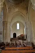 Au centre de l'édifice, quatre massifs de colonnes, surmontés de chapiteaux à décoration simple, délimitent le carré du clocher et supportent une coupole sur trompes.