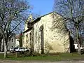 L'église servait jadis de chapelle à l'hôpital de pèlerins situé dans une maison proche nommée l'hospitaou, aujourd'hui disparue[5]. Des peintures murales sont découvertes dans le chœur en 1985 et sont restaurées en 1989. Elles figurent au nord et à l´est un cortège de priants. Le mur sud est consacré à deux scènes de la Genèse : le Péché originel et l'expulsion du Paradis[6].