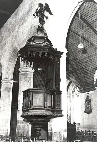 La tour-clocher date de 1554. Les quatre cloches sont rétablies après la Révolution. La nef est restaurée en 1829-1830, elle comprend neuf travées et possède des bas-côtés. L'édifice possède un chevet plat percé d'une maîtresse vitre et deux chapelles latérales. La chapelle de Keranrais possède deux sablières sculptées aux armes de la famille Keranré. Le retable du maître autel et les stalles datent du XVIIe siècle. Le maître autel est restauré en 1872 par Jean Omnès. La chaire du XVIIe siècle est restaurée au XXe siècle et une série de dix tableaux partant du bas de l'escalier vers le haut représente les prophètes d'Israël. Les fonts baptismaux datent du XVIIe siècle[1],[2].