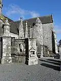 À côté de l'église, dans le cimetière, est érigé un calvaire du XVe siècle. La base est surmontée de trois croix portant Jésus et les deux larrons. Sur les culs de lampe en forme de branches, deux statues de saintes femmes. Au-dessous d'elles, sur le fût, un ange porte les instruments de la Passion. Au pied de la croix, quatre personnages devant une descente de croix. À l'arrière, scène de la flagellation[1].
