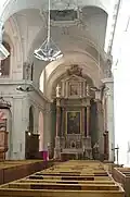 Les statues des quatre évangélistes sont commandées en 1761 au sculpteur Fleurant Lecomte. La Révolution supprime les autels et les armoiries du cardinal, en particulier au fronton et au dessus de la porte principale, mais aussi à l'intérieur de l'église.
