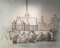 La progression de ce chantier long de près d'un siècle est mal connue, à cause de la disparition des archives des arbalétriers. Le chœur était achevé en 1435, comme l'attestent des peintures murales portant cette date. Le transept nord était sans doute achevé vers 1450, et l'on travaillait au transept sud et aux cinq premières travées de la nef. Les travaux s'interrompirent au cours de la période d'instabilité politique qui suivit la mort de Charles le Téméraire en 1477. Ils reprirent à la fin du siècle et la nef comporta finalement sept travées dont les deux dernières auraient dû être surmontées d'une tour qui ne fut jamais construite. Le sacrarium, un petit édifice construit en hors-d'œuvre derrière le chœur, date de 1549, À la fin du XVIe siècle, l'église fut saccagée par les calvinistes. C'est alors que fut détruite la statue de la Vierge apportée par Béatrice Soetkens[1].