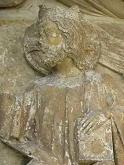 Sur la façade principale se trouve le portail principal, sculpté en pierre calcaire blanche, réalisé vers 1250. La figure du pilier du trumeau représente Éliphe, saint patron de l'Église.