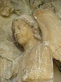 Le tympan est dédié au Jugement dernier. Au milieu, entouré d'anges, le Christ est intronisé en tant que juge du monde. Juste au-dessous, sur le linteau, les morts sortent de leurs tombes pour être jugés. Au-dessus du tympan s'arquent des archivoltes décorées de baguettes rondes, de feuillages et de figures d'anges.
