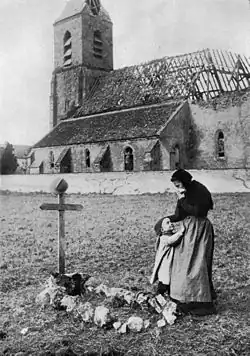 Les bombardements de septembre 1914 endommagent le clocher et la toiture[1].