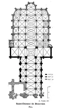 L'église Saint-Étienne de Beauvais est une église catholique paroissiale située à Beauvais, chef-lieu du département de l'Oise, rue de l'Étamine. Sa fondation à la fin du IIIe siècle est due à saint Firmin. L'on ignore son premier vocable, mais elle a longtemps été dédiée à saint Vaast d'Arras, et un chapitre a existé sous ce titre de 1072 à 1742. Même avant le début de la construction de l'église actuelle au début du XIIe siècle, l'église Saint-Étienne est le centre de la vie municipale, et bien que située en dehors de la cité épiscopale, sa paroisse est l'une des plus importantes de la ville. Sa nef et son transept sont de style roman, hormis les deux premières travées de la nef reconstruites après un incendie à la fin du XIIe siècle, et les murs orientaux du transept en grande partie remaniés au XVIe siècle. Dans la nef, l'on trouve une élévation à trois étages avec triforium. Le voûtement d'ogives des bas-côtés a vraisemblablement commencé vers 1120, mais l'on suppose que le chœur roman terminé avant cette date était voûté d'ogives dès le départ. Si l'église Saint-Étienne n'était pas pionnière dans le voûtement d'ogives dans la région, rôle qui incombe à l'abbatiale Saint-Lucien de Beauvais démolie après la Révolution française, elle représente néanmoins la plus ancienne église en France en dehors de la Normandie conçue d'emblée pour être voûtée d'ogives. C'est en même temps l'une des églises romanes les plus considérables qui subsistent aujourd'hui au nord de Paris. Le chœur, bien connu grâce à des fouilles pendant les années 1950, a été démoli successivement pendant le premier quart du XVIe siècle pour être remplacé par une vaste construction de style gothique flamboyant, qui est rapidement embellie par des vitraux historiés confectionnés par les meilleurs maîtres-verriers de la région. Même sous la Révolution dont l'iconoclasme a fait des ravages dans l'église, ces vitraux ont été respectés et font la célébrité de l'église Saint-Étienne, avec la façade septentrionale de style roman fleuri richement décorée et les vieilles voûtes. L'architecture du chœur avec son chevet plat n'a longtemps pas été appréciée à sa juste valeur ; pourtant, il est très élancé et très lumineux : la hauteur sous voûtes atteint les 29,50 m, et les fenêtres hautes d'une superficie de plus de 40 m2 chacune remplissent toute la place disponible entre les piliers. L'église a très tôt été classée au titre des monuments historiques par arrêté du [2]. Sa restauration commence bientôt après, mais les campagnes de restauration peuvent rarement être menées à terme, et l'état global de l'édifice ne cesse de se dégrader jusqu'à la restauration générale de la nef au début du XXe siècle. Déjà proche de la ruine lors du bombardement du 8 et , le chœur est enfin restauré après-guerre.