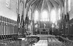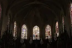 Le chœur actuel accueille un ensemble de 64 stalles en chêne datant du XIVe ou du XVe siècle, provenant probablement de l'abbaye Notre-Dame de la Cour-Dieu et classées monument historique le [A 3].