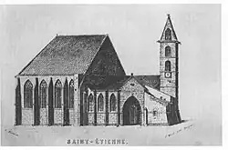 Elle ne prit le nom de Étienne qu'à partir du XIIe siècle quand l'abbé de Saint-Michel revenant de Rome apporta des reliques du saint. Dans des accords de 1145, 1152 et 1194 l'église n'est plus désignée que sous le vocable d'Étienne.