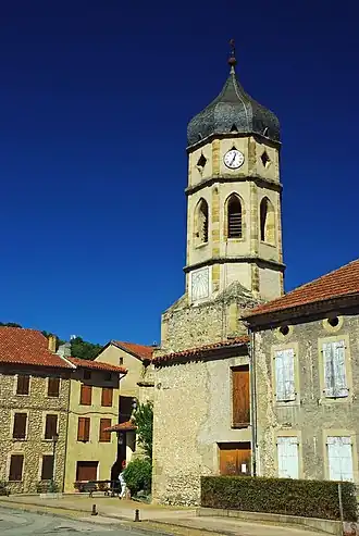 En partie insérée dans divers bâtiments, c'est une église qui se singularise par un clocher octogonal sur une base carrée, terminé en forme de bulbe couvert en ardoises, le seul en Ariège avec celui de l'église Saint-Barthélémy de Caumont.