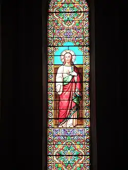Signés du Lyonnais Dufêtre, les vitraux représentent des portraits en pied de saints, choisis selon les prénoms des donateurs. Les fidèles, les visiteurs peuvent reconnaitre :