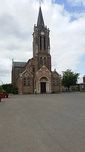 L'expansion du village qui devient une véritable petite ville à cause de l'essor industriel nécessite la construction d'une église plus vaste. La première pierre est posée le par le maire de l'époque, Auguste Wagret. Elle est terminée en 1875 et consacrée le [1]. La messe dominicale est célébrée une fois par mois le samedi soir[2].