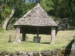 Situé dans l'ancien cimetière de Carlat, près de l'église Saint-Avit, cet oratoire date du XVIe siècle, il abrite un autel et un calvaire sculpté, ainsi que les tombeaux de deux anciens curés de la paroisse, un de Labrousse, décédé en 1871, et un de Vic-sur-Cère, décédé en 1891. Il est construit de quatre piliers d'andésite, avec une charpente en bois, un toiture de lauzes et épi de faîtage en zinc. La croix est également en andésite, le calvaire est sur son côté ouest, et une Vierge de Pitié sur le côté Est.