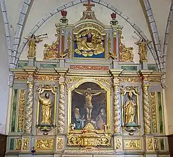 - le retable du maître-autel est dédié à Dieu le Père. La Crucifixion peinte au centre est encadrée des statues représentant saint Barthélemy, patron de l'église, et saint Martin de Tours.