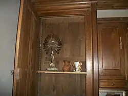 Les objets liturgiques (ostensoirs, crucifixs, encensoirs, navettes) sont entreposés ici.