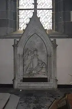 Le une grande partie des tuyaux qui ornaient le buffet de l'orgue ont disparu[6]. Des voleurs de métaux se sont introduits dans l'église et ont désossé cet instrument classé et emporté la plupart des tuyaux composés d'étain et de plomb, les métaux recherchés. Le permis de destruction de l'église, déjà abandonnée depuis des années et désacralisée, avait été délivré une semaine plus tôt. Il ne restait qu'à dégager une solution pour l'orgue classée au Patrimoine Wallon[7].