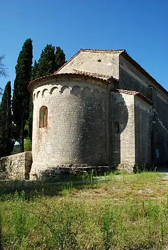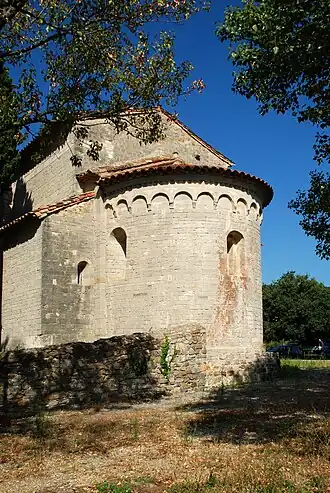 L'église possède un beau chevet semi-circulaire édifié en pierre de taille sur un soubassement en moellon.