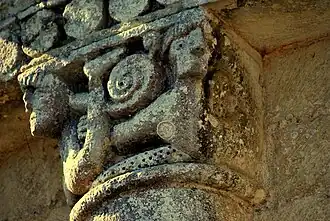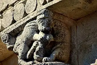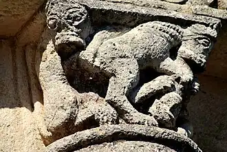 Toute la sculpture figurée romane est concentrée sur la corniche de l'abside : trois chapiteaux et quinze modillons.