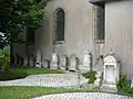 Lors d'un aménagement récent, les pierres tombales de l'ancien cimetière entourant l'église ont été conservées et disposées dans un jardin paysager pour les plus importantes et apposées contre les murs de la nef pour les plus modestes.