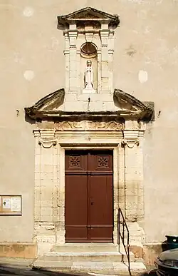 Le portail de style classique fut édifié en 1668, comme l'atteste le millésime gravé dans la pierre sur la niche qui le surmonte.