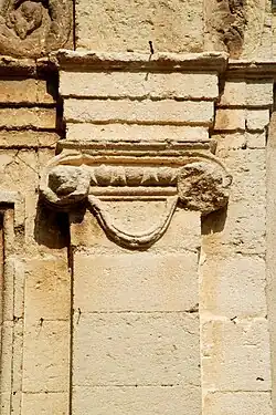 Le portail est composé de deux pilastres sommés de chapiteaux ioniques supportant un entablement comportant une architrave moulurée et une frise ornée d'un cartouche et de rinceaux. Cet entablement supporte un fronton brisé encadrant une niche cintrée surmontée d'une coquille Saint-Jacques et encadrée de pilastres supportant un fronton triangulaire. La clé d'arc qui surmonte la niche porte le millésime de 1668.