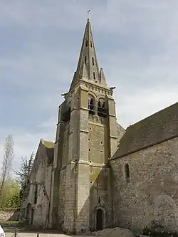 L'on ignore tout sur les premiers édifices de culte du village. Une petite église romane est bâtie au cours du premier quart du XIIe siècle. Elle se compose d'une nef-grange non voûtée et d'un chœur, dont le type de voûtement ne peut être précisé avec certitude. La façade occidentale (sauf le portail, qui est postérieur), le mur nord de la nef avec un portail bouché, et le mur nord du chœur avec trois chapiteaux de facture grossière en subsistent à ce jour. Vers le milieu du XIIe siècle, à la période de transition du roman vers le gothique, un clocher est ajouté au nord du chœur. Quelques années plus tard, au cours des années 1150 / 1160, l'église est agrandie pour une seconde fois : le chœur est prolongé d'une travée. La voûte de la première travée du chœur est refaite à la même occasion. Avant la fin du XIIe siècle, l'église est agrandie pour une troisième fois par une adjonction d'une chapelle carrée au sud de la seconde travée du chœur. Elle est empreinte du style gothique primitif. Un nouveau portail du même style est plaqué devant la façade romane. Au début du XIIIe siècle, la nef est dotée d'un bas-côté unique au sud. Toujours au cours du XIIIe siècle, le chevet est lui aussi remanié, cette fois-ci dans le style gothique rayonnant : Il est percé d'une vaste baie, qui est équipé d'un élégant remplage. Remplacé ultérieurement par un réseau gothique flamboyant, seulement l'encadrement de fines colonnettes et de minces tores en subsistent à ce jour, et la baie flamboyante est elle-même en plus grande partie bouchée. La guerre de Cent Ans occasionne certainement des dégâts, et devrait expliquer la réfection du remplage de la baie centrale du chevet dans le style flamboyant. Les autres travaux effectués à la fin du XVe siècle et vers le milieu du XVIe siècle portent toutefois sur des agrandissements. Il s'agit de l'adjonction d'une chapelle dans l'angle entre clocher et seconde travée du chœur, à la fin du XVe siècle, et de la construction d'une chapelle au sud de la première travée du chœur, entre le bas-côté de la nef et la chapelle existante. Cette chapelle est de style Renaissance, et afin de mieux se raccorder avec le bas-côté, sa seconde travée est exhaussée, et la pile sud-ouest de la première travée du chœur est reprise en sous-œuvre pour être remplacée par une grosse colonne isolée[5].