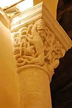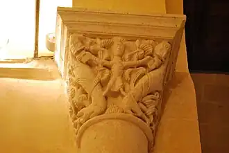 Certains guides touristiques affirment que ce chapiteau représente Jonas avalé par la baleine, malgré le fait que l'on voit sur la corbeille deux serpents, et non pas une baleine, qui avalent un homme et une femme !