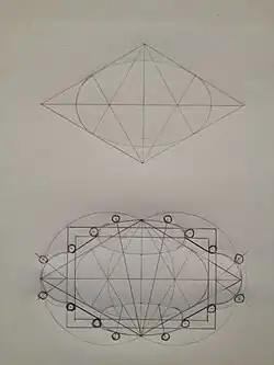 Le schéma directeur de San Carlino dérive de celui d’un plan central. Il est basé sur la figure géométrique de deux triangles équilatéraux ayant une base commune et dans lesquels se trouve inscrite une ellipse, le diamètre des colonnes est inscrit entre deux rectangles concentriques qui déterminent le centre des absides semi-circulaires. La complexité de la construction démontre combien Borromini possédait l’art de la géométrie (voir le schéma ci-dessous)[3].