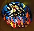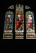 Il y a également trois vitraux modernes, qui datent du XXe siècle. Ils sont l’œuvre de Raymond Mirande[3], poète, philosophe, émailleur, vitrailliste et mosaïste.