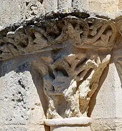 Des quatre chapiteaux qui supportent les voussures, seuls ceux du nord sont romans. Au sud, des compositions banales ont remplacé les anciens thèmes, dont on ne connait plus rien.