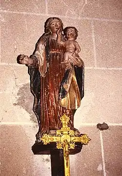 Au nord à côté du chœur se trouve une petite chapelle latérale datant du XVIe siècle. Elle a été construite par Antoine Goutault, dernier prieur des moines bénédictins. Il est l’auteur d’une plaque accrochée à un mur en sa mémoire. La chapelle, alors consacrée à Saint-Antoine, l’est désormais à la Vierge. Deux statue en bois polychrome qui datent du XIVe et XVe siècles y figurent.