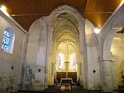 - Vue dans la nef depuis la base du clocher.