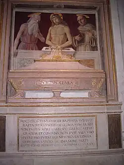 - Cappella Tiranni et Le Christ dans le sarcophage entre saint Jérôme et saint Bonaventure (vers 1480), Giovanni Santi,