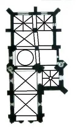 - la tour d'escalier nord qui devait donner accès à un clocher placé sous la coupole ;