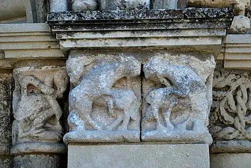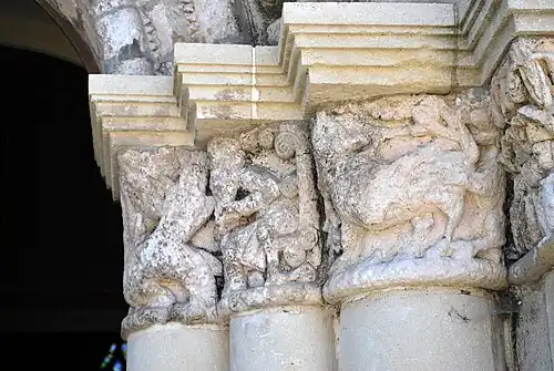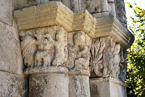 Les motifs et scènes que l'on peut encore reconnaître évoquent les péchés capitaux. On peut remarquer un parallélisme avec les chapiteaux du portail de la chapelle Saint-Gilles de Pons.
