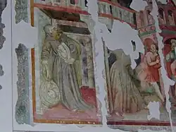 Le long des murs intérieurs, des fresques des XIVe et XVe siècles sont des ouvrages des artistes des écoles ombro-toscane et émilienne.