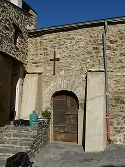 L'église est attenante à une maison d'habitation. Bâtie à partir de moellons de schistes liés entre eux par du mortier, l'église est constituée d'une nef unique et d'une abside orientée vers l'est. L'entrée se fait par le côté sud où se trouve une porte en plein cintre. Deux fenêtres à double ébrasement sont situées au sud et à l'est. Une chapelle sur le côté nord et le clocher-mur ont été rajoutés à l'époque moderne[1].